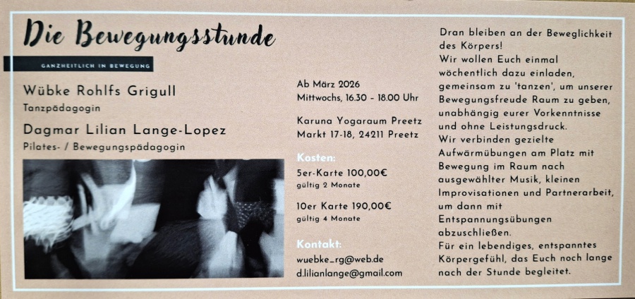 einmal wöchentlich Mittwochs von 16.30 -18.00 Uhr
